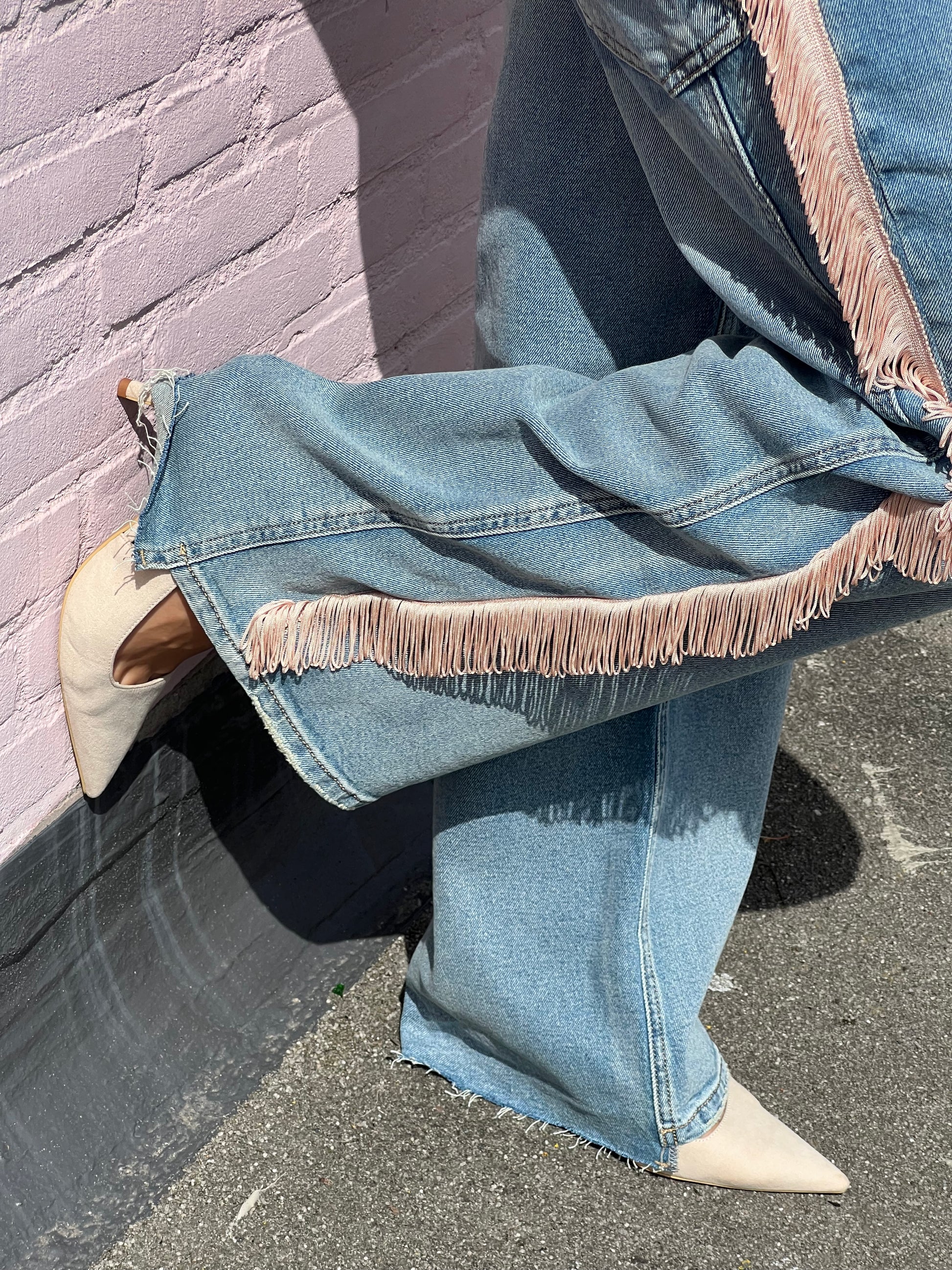 Upcycled jeans met franje.